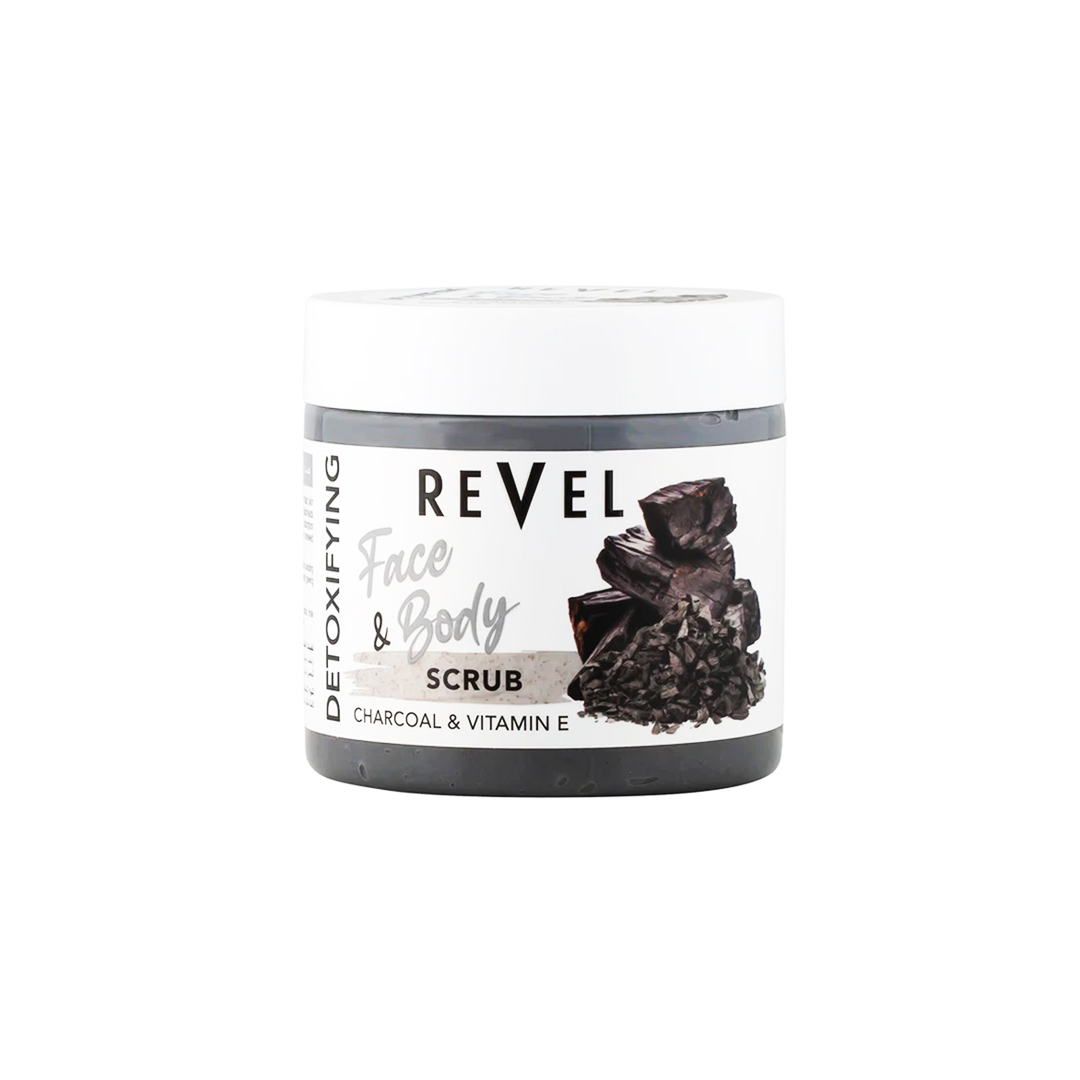 Revel Charcoal face & body scrub, with its unique formula sloughs off dead skincells and deeply cleanses facial skin by removing dirt, excess oil & blackheadsmaking your skin smooth, soft and glowing. Activated Charcoal adsorptionproperties helps draws out toxins, dirt and impurities that clog pores for a renewedand clear looking complexionDIRECTION: Gently massage with fingertips in a circular motion over damp skin, avoidingthe area around eyes. Wash off and pat dry. Use 2-3 times a week for a healthy, glowingskin.